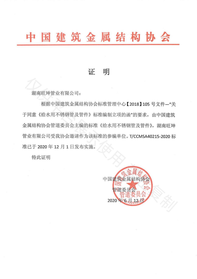 《給水用不銹鋼管及管件》編制單位