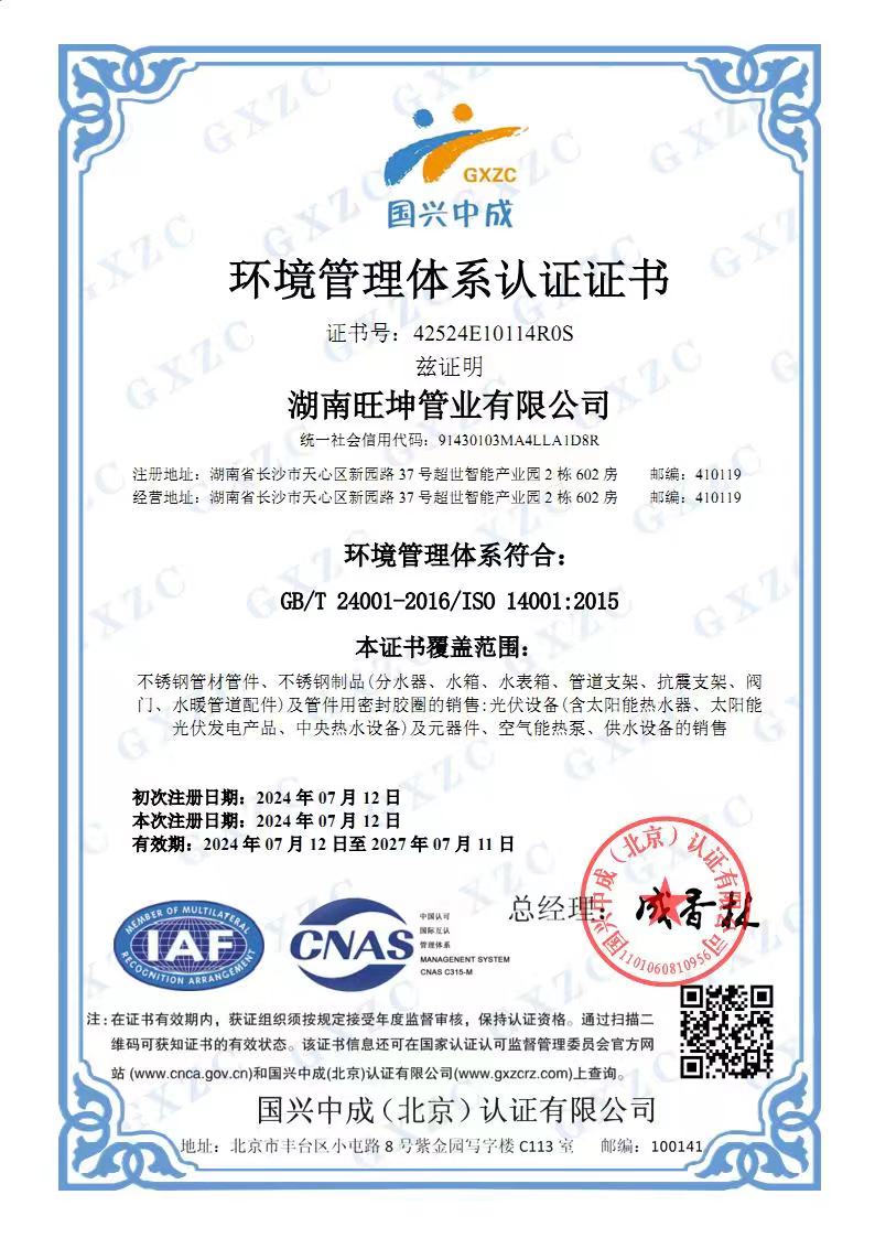 環(huán)境管理體系認(rèn)證證書