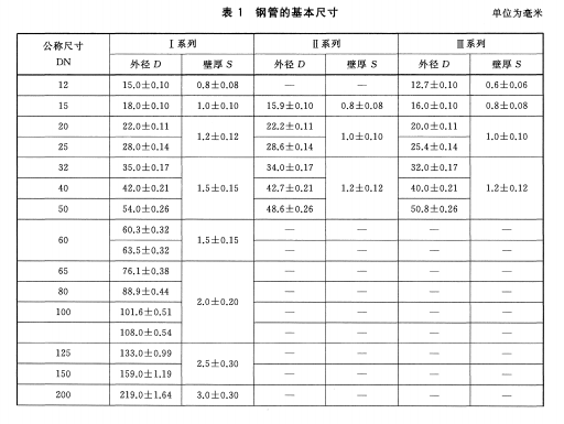 3.1 鋼管的尺寸與偏差應符合表 1 的規定。
