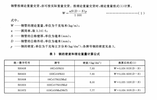 鋼管按理論重量交貨,亦可按實際重量交貨。按理論重量交貨時,理論重量按式 (1) 計算: