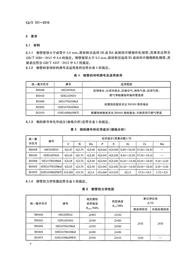 本標準規定了薄壁不銹鋼管 (以下簡稱鋼管) 的標記與標志、尺寸與偏差、重量、要求、試驗方法、檢驗規則、包裝、運輸和貯存及訂貨。本標準適用于公稱壓力不大于 1.6 MPa,公稱尺寸不大于 DN300,用于輸送生活用水 (冷水、熱水)、飲用凈水、醫用氣體、壓縮空氣、惰性氣體、燃氣、燃油等薄壁不銹鋼管設計、制造和驗收。